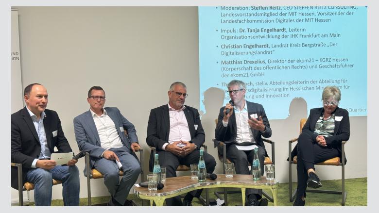 Unter dem Motto „Digitalisierung von Verwaltungsleistungen und Kommunen“ versammelten sich am Donnerstagabend hochkarätige Vertreterinnen und Vertreter aus Politik, Wirtschaft und öffentlicher Verwaltung im TechQuartier Frankfurt. Die Veranstaltung, moderiert von Steffen Reitz, CEO der STEFFEN REITZ CONSULTING GmbH, Landesvorstandsmitglied der MIT Hessen und Vorsitzender der Landesfachkommission Digitales der MIT Hessen, bot einen intensiven Austausch über Chancen, Herausforderungen und konkrete Lösungsansätze für die digitale Transformation der öffentlichen Verwaltung.