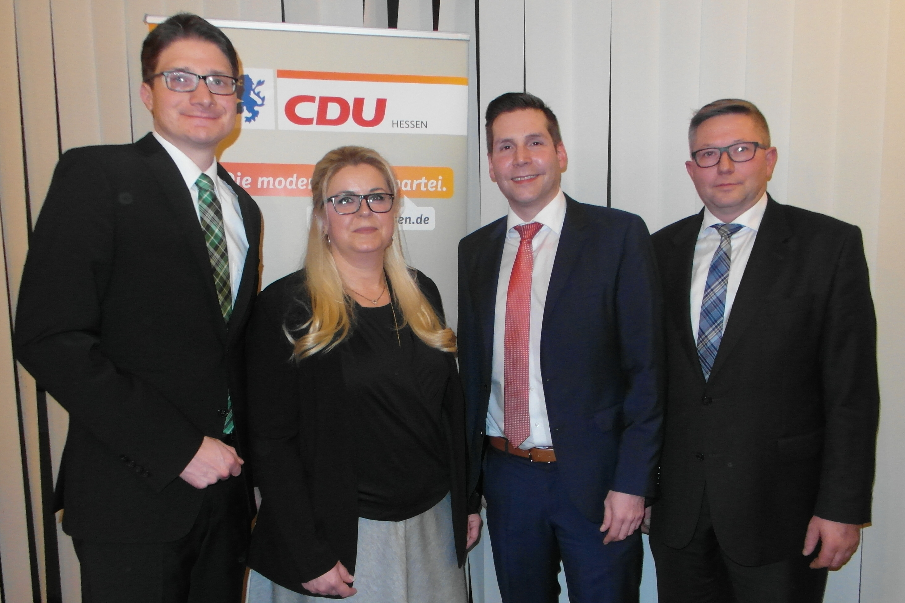 v. l.: Timo Lübeck, CDU-Kreisvors. Hef/Rof, Alexandra Weireich, stellv. Landtagsk., Andreas Rey, MIT-Kreisvorsitzender Hef/Rof und Landtagsk. und Holger Schwaab, stellv. MIT-Bezirksvorsitzender